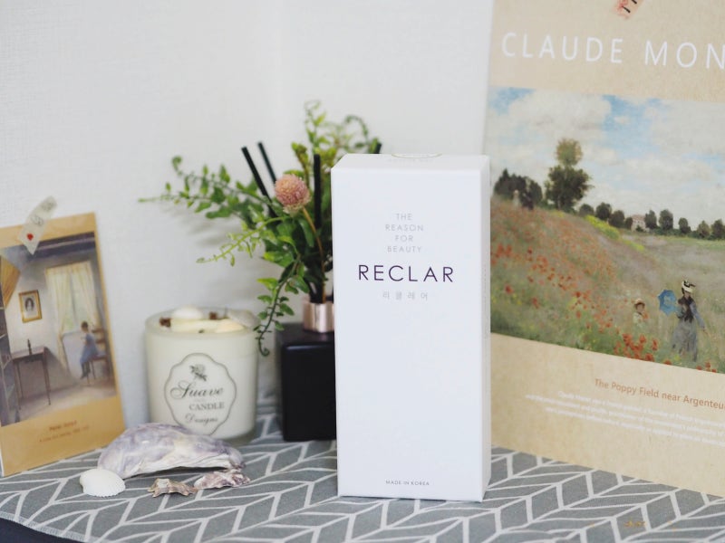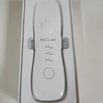 심플한 흰색 상자에 미학을 위한 리클레어 갈바닉 워터 엑스폴리에이터가 들어 있습니다.