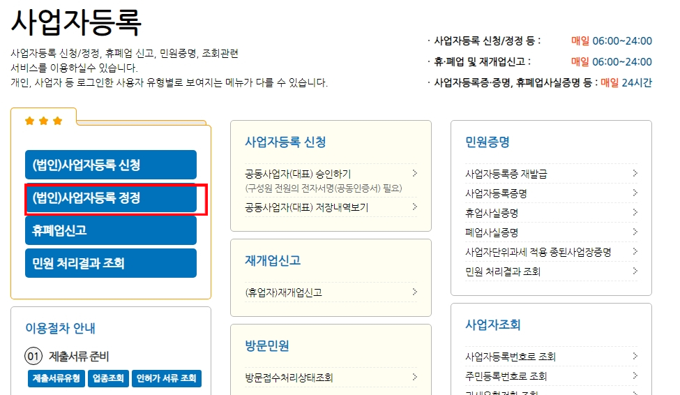 사업자등록증 변경 신고를 할 때 개인과 법입 절차도 구분된다. 개인의 경우 사업자가 신분증만 있고 허가나 등록사항이 아니면 얼마든지 업종 추가를 할 수 있지만 법인은 그렇지 않다. 법인의 업태종목 변경은 정관의 목적사항이 바뀌는 것이므로 이사회나 주주총회를 거쳐 등기부등본부터 수정하고 이를 근거로 사업자등록증 정전신고를 할 수 있다. 이런 절차를 모르고 세무세에 가면 사업자등록증에 업종 추가를 해준다는 것은 큰 착각이다.