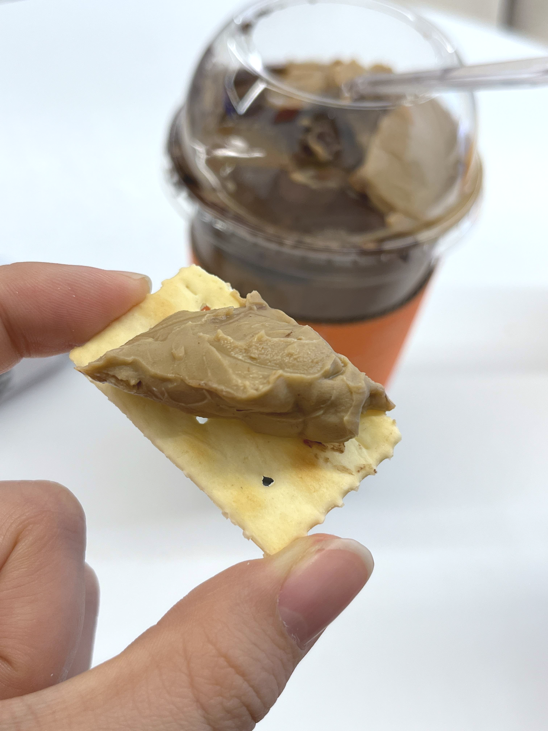 생초콜릿라떼에는 과자와 함께 초콜릿을 떠먹을 수 있는 스푼이 함께 제공됩니다.