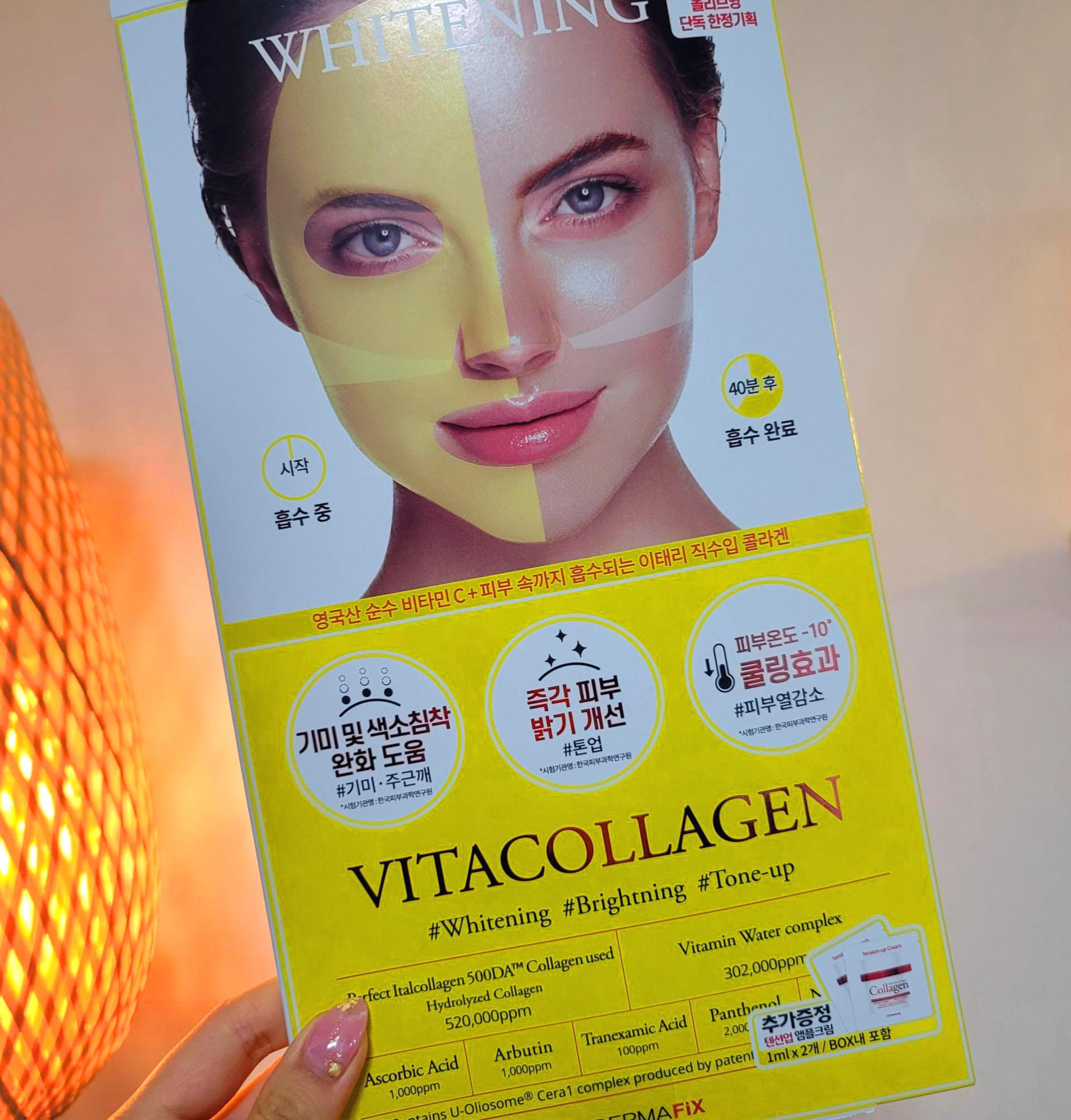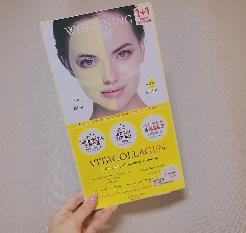 기미나 색소 침착 완화에 도움이 되기 때문에 기미나 주근깨에 좋을 것 같은 것들이 있죠?그리고 바로 피부 밝기를 개선한다는 말에 사실 앞으로 빼서 제일 먼저 쓰기로 결심했던 콜라겐 자체는 시원하게 쓰면 더 좋다.집에 오자마자 냉장고행. www너무 행복했던 건 1+1 단독 한정 기획도 모자라 텐션 업 앰플 크림까지 추가로 들어가 있어서 내 상황에서 사용하기 좋은 거였어요.사용방법은 뒷면에 나와있는데 이건 기본 시트와 다른 콜라겐이기 때문에 꼭 읽고 사용하셔야 해요!저도 처음 썼을 때 붙였는데 이건 어떤 면이 피부에 닿아야 하는지 나와 있기 때문에 알아야 할 부분이에요.사용방법은 뒷면에 나와있는데 이건 기본 시트와 다른 콜라겐이기 때문에 꼭 읽고 사용하셔야 해요!저도 처음 썼을 때 붙였는데 이건 어떤 면이 피부에 닿아야 하는지 나와 있기 때문에 알아야 할 부분이에요.만족하네ㅠ_ㅠ원래 홍조도 있는데 전라도에 갔더니 체감 24도…거기에 햇빛이 강한데 3~5시간 밖에 있으니까 홍조를 탔어~홍익인간인줄 알았어;;당장 톤업이 필요해서 정신이 없었어요!끝난 후 기초 제품 잇님들이 쓰는 거 그대로 바르고 흡수되면 앰플처럼 쓰면 수분 보충이 더 좋았어요.여기서 잠깐만! 이건 여러분들이 올리브영 마스크팩을 추천받은 제품과는 달라요ㅠ_ㅠ앰플 1개라는 에센스도 넘치지 않고 양쪽 비닐에 모두 쓰이고 있는데 벌집모양으로 된 부분을 꼭 피부에 닿게 붙여줘야 반대로 해버리면 붙일지도 모르니까 꼭 읽고 그대로 사용해보세요~!씻고 오자마자 붙여줄게 ㅋㅋ 양쪽 얼굴이랑 콧날이 까맣죠… 네, 탔어요=_= 정말 이럴 때 미쳐버려요.눈 쪽에 남아있는 것은 코에 묻어주었습니다.아무래도 더마픽스비타 콜라겐 시트가 잘 찢어지는(?) 아이라서 눈쪽, 코, 입 끝부분은 벌리고 손톱으로 눌러 살짝 찢어 얼굴형에 맞게 밀착시켰어요더 머픽스비타 콜라겐 마스크팩은 이탈리아 최대 콜라겐 원료회사인 이타르 젤라틴 사랑을 공동으로 연구개발해 피부 흡수에 용이한 500달러톤 저분자 피쉬 콜라겐을 만들어냈습니다.그리고 일반인들 모공 사이즈는 9억 9천 7백만분의 1 크기로 제작하여 침투율이 좋고 다른 팩보다 금방 달라지는 느낌이 드는 아이랍니다 ㅎㅎ원래 한 팩만 들어 있는데 지금은 올리브영 단독으로 1+1 하고 있으니까 이럴 때 사면 정말 이득이 되지 않을까 싶어요.저도 원래 여기 거 좋아하는데 금액대가 조금 있어서 계속 이것만 쓸 수는 없고 정말 심각할 때만 쓰고 있거든요 근데 1+1이라 종류별로 사두려고 사와서 쓰기 만족~!마름에 따라 콜라겐이 피부에 흡수되어 오른쪽 사진처럼 투명해집니다.계속 붙이면 오히려 안 좋기 때문에 어느 정도 흡수가 돼서 투명해졌다 싶으면 떼어내고 톡톡 두드려 남은 수분을 피부에 머금도록 합니다.한 번 썼음에도 불구하고 피부 온도가 뚝 떨어졌다는 게 바로 느껴지고 끈적임 없이 남아 있는 에센스가 없는데 피부는 이미 쫀득쫀득하기 때문에 이걸로 일주일 동안 관리를 해주시면 저는 피부로 돌아갈 것 같아요.혼자만의 의지지만 ww 노력은 배신하지 않는다고 30대 피부는 20대보다 2배나 더 살펴봐야 합니다.번주는 묻어있는 앰플까지 사용해서 회복주로 탄탄대로 정했어요 :)1+1은 11월 한달동안 이 기간동안 구매하시면 혜택을 받으실 수 있으니 참고하시고 기본 사슴 비타민은 다 좋고 마일드하고 민감한 저에게도 잘 맞으니 안심하고 사용해보셔도 좋으니 올리브영 마스크팩 추천드려요 🙂 제품 보기1+1은 11월 한달동안 이 기간동안 구매하시면 혜택을 받으실 수 있으니 참고하시고 기본 사슴 비타민은 다 좋고 마일드하고 민감한 저에게도 잘 맞으니 안심하고 사용해보셔도 좋으니 올리브영 마스크팩 추천드려요 🙂 제품 보기