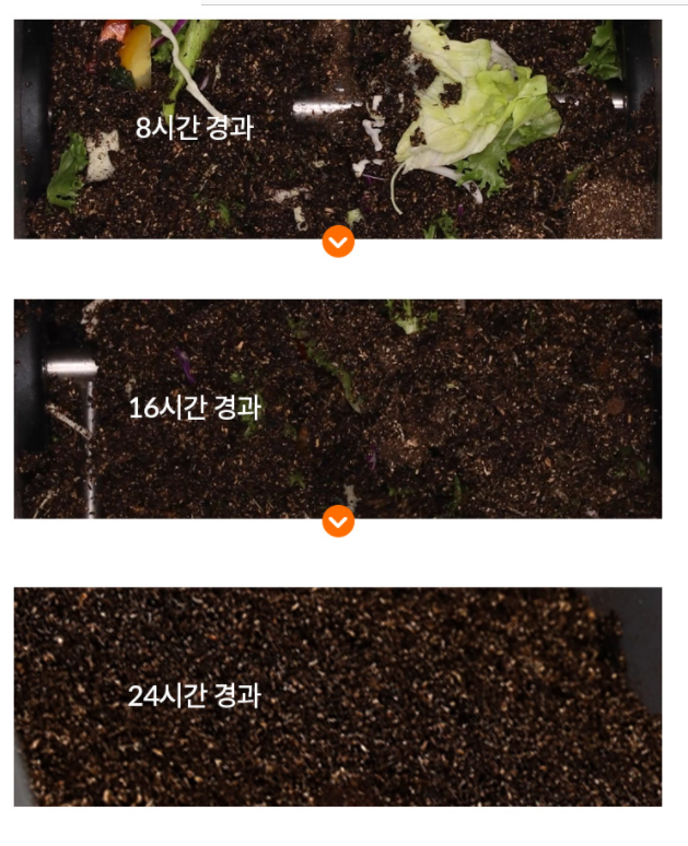 여기에 미생물과 음식물을 넣고 하루가 지나면 미생물이 분해한다고 한다. 각 단위 시간을 보면 미생물이 분해를 마친 것을 알 수 있죠? 변화가 있을 때 미생물은 점차 제재를 축적한다고 한다.