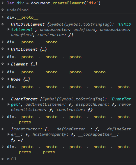 인스턴스의 __proto__ 를 사용하여 더 자세히 확인할 수 있습니다. __proto__를 사용하여 부모 클래스의 프로토타입 또는 “부모의 부모 클래스” 프로토타입을 찾을 수 있습니다.