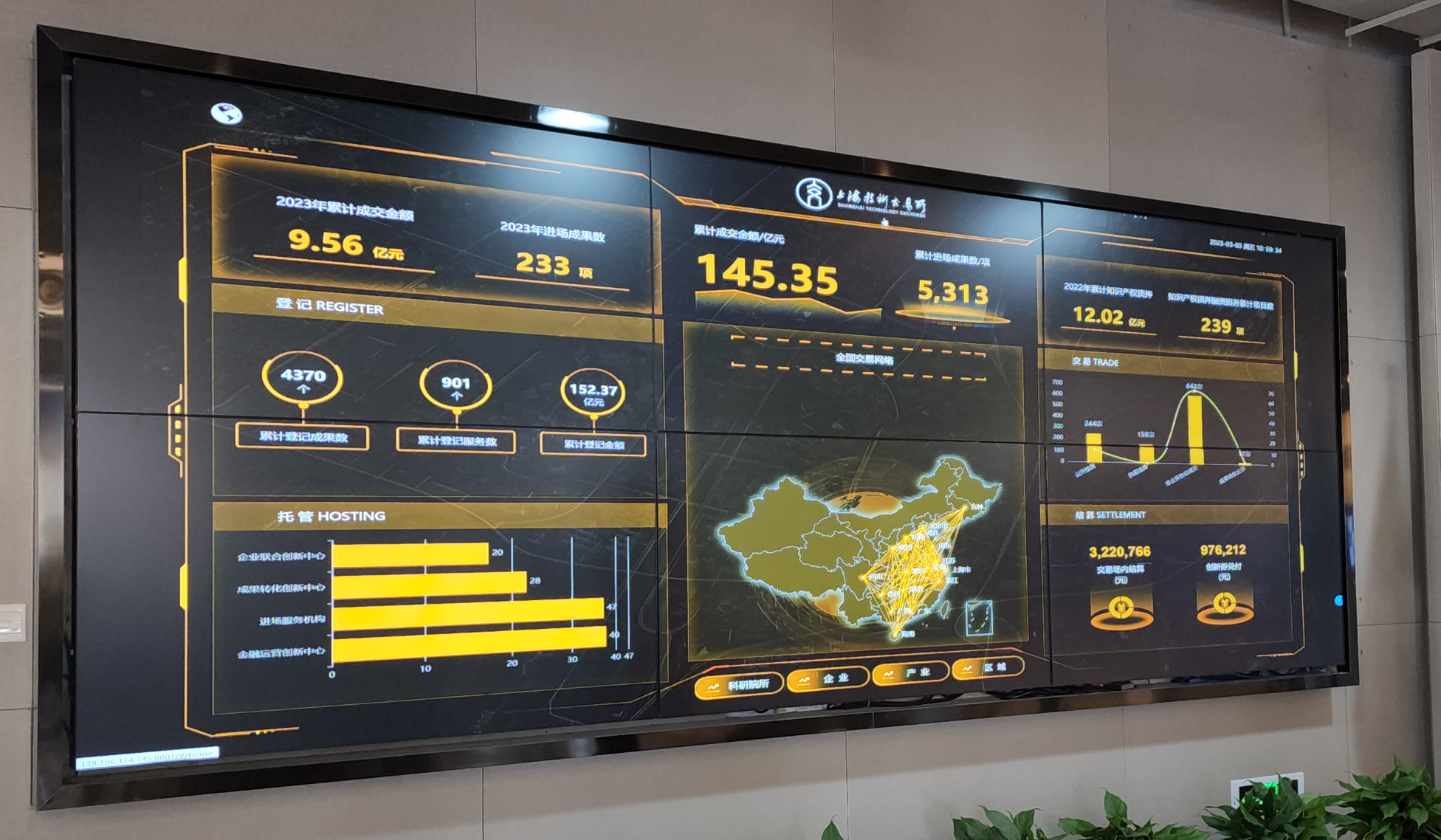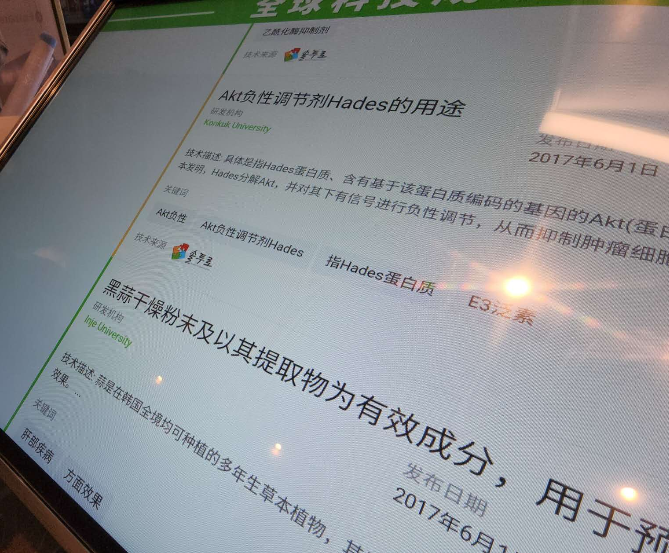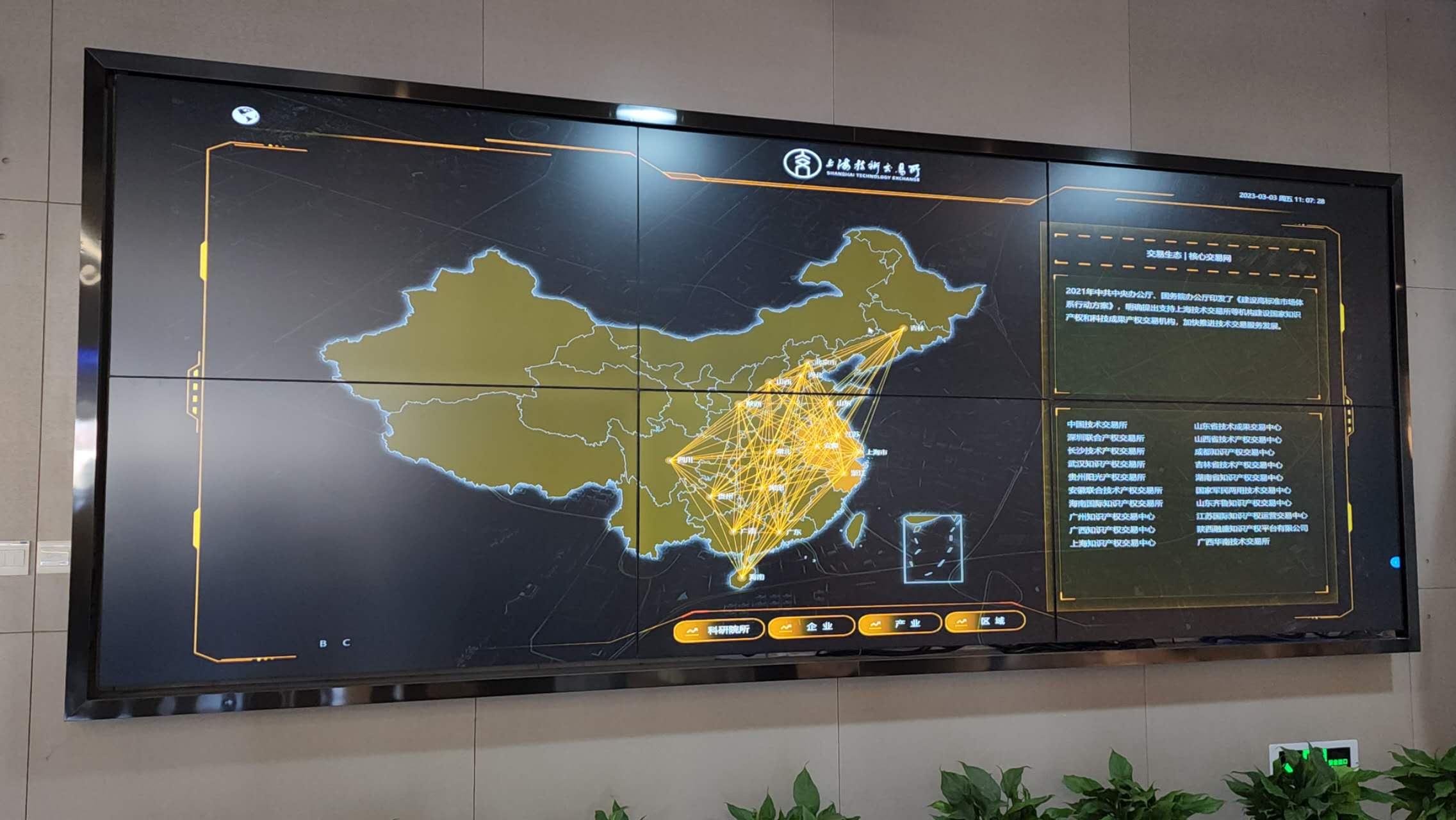 한국 기업의 기술 거래 건수는 1층 로비(아래 사진)에 있는 글로벌 기술 성과 플랫폼에서 확인할 수 있다.