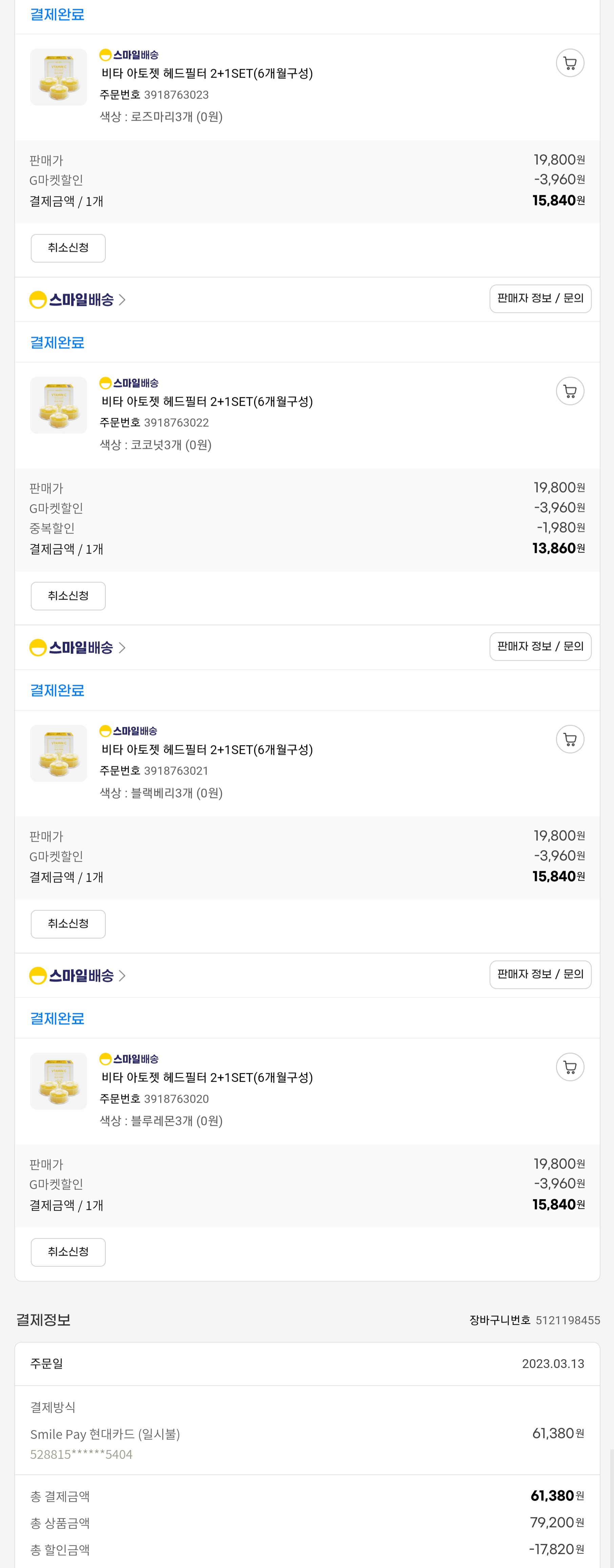 Atojet 헤드 필터에서 4가지 향수 모두 구입